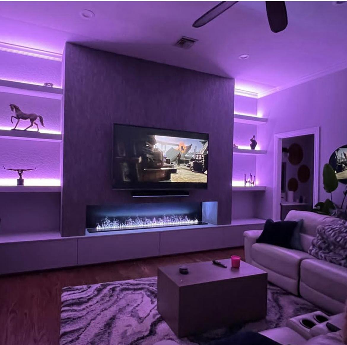 Dank individuell einstellbarer Flammenfarben und Lichtintensitäten wird der Wasserdampfkamin zum eleganten Blickfang und stilvollen Mittelpunkt Ihres Wohnraums.